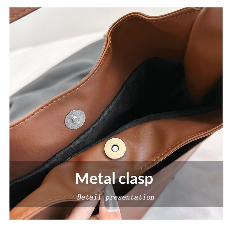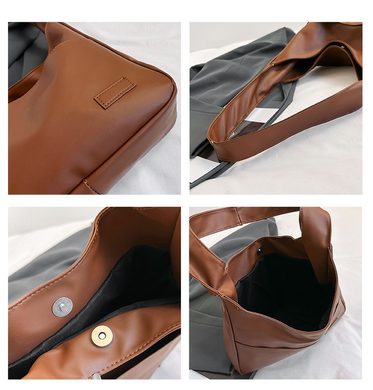 Large-Capacity Retro Solid-Color Textured Simple Casual Tote Bag